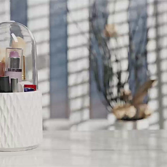 Keep your brushes pristine and pet hair-free with our 360° rotating covered organizer. 5 compartments hold 20+ brushes up to 9" tall while the waterproof dustproof dome shields them from dust, dander, and bathroom moisture.